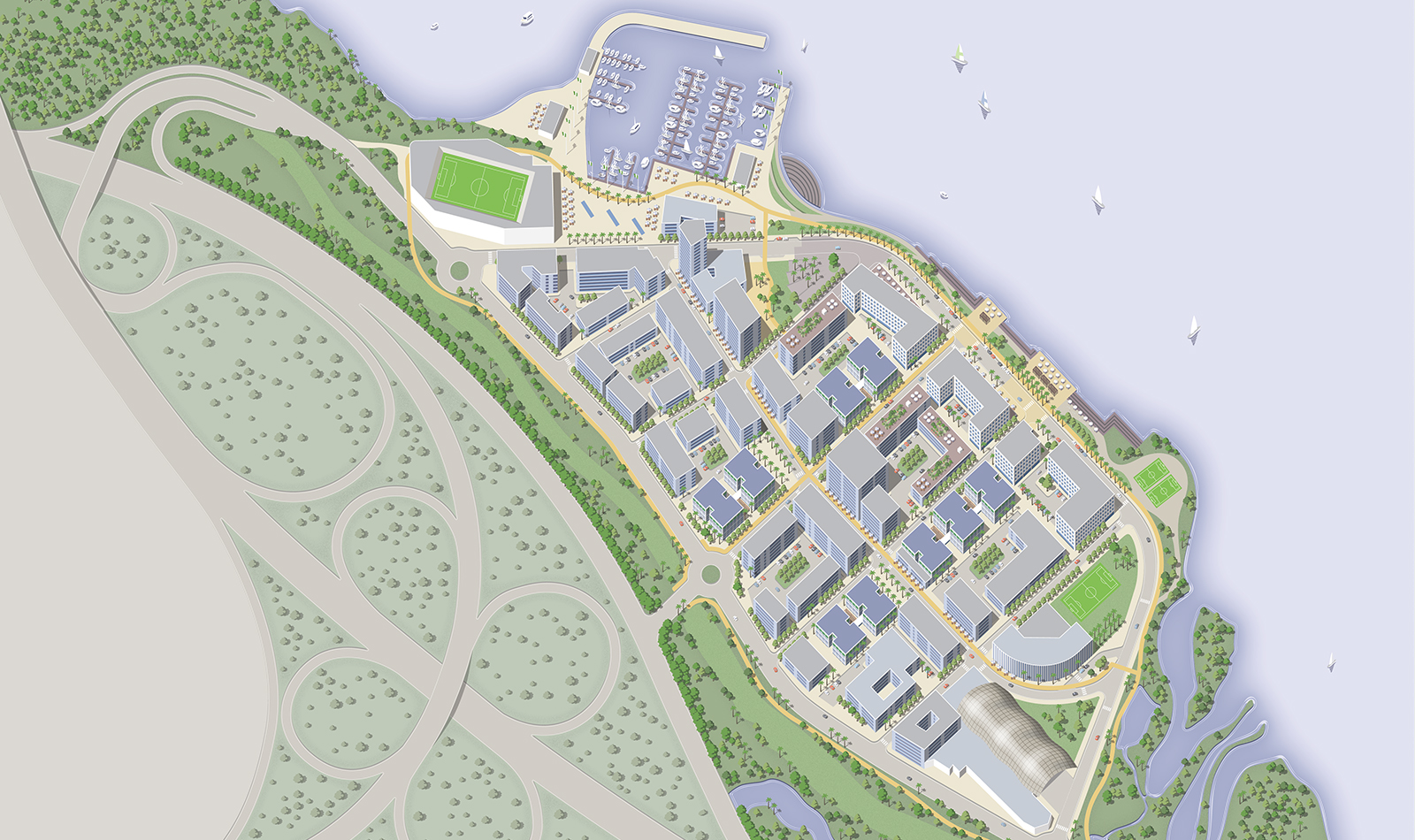 Amidst tree-lined streets, residential apartments, medical facilities, a school, shopping boulevards and public squares, an outdoor sports field and gym, restaurants, bars and cafes, office spaces, hotels, an elevated beach, performance and leisure areas, landscaped gardens and new green wetlands, Ilubirin is a place to meet, a place to relax, a place to live and work, or plainly for fun.